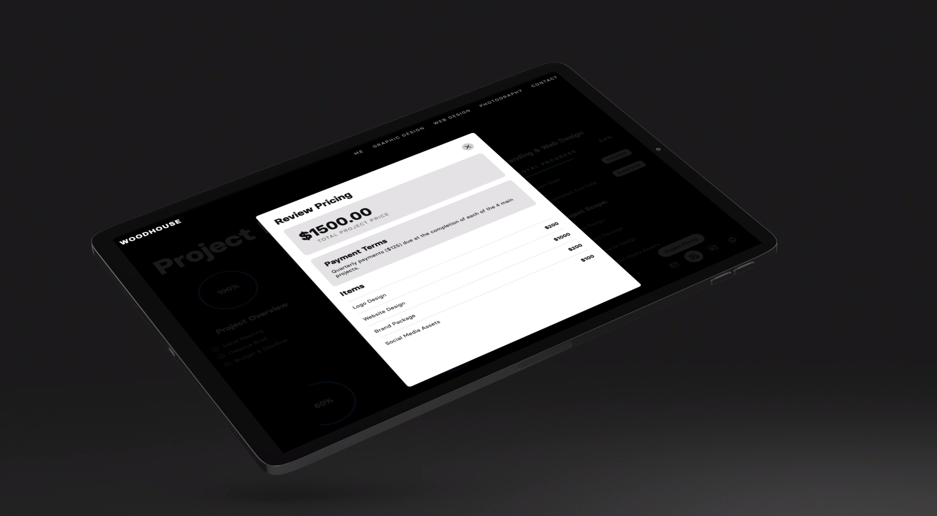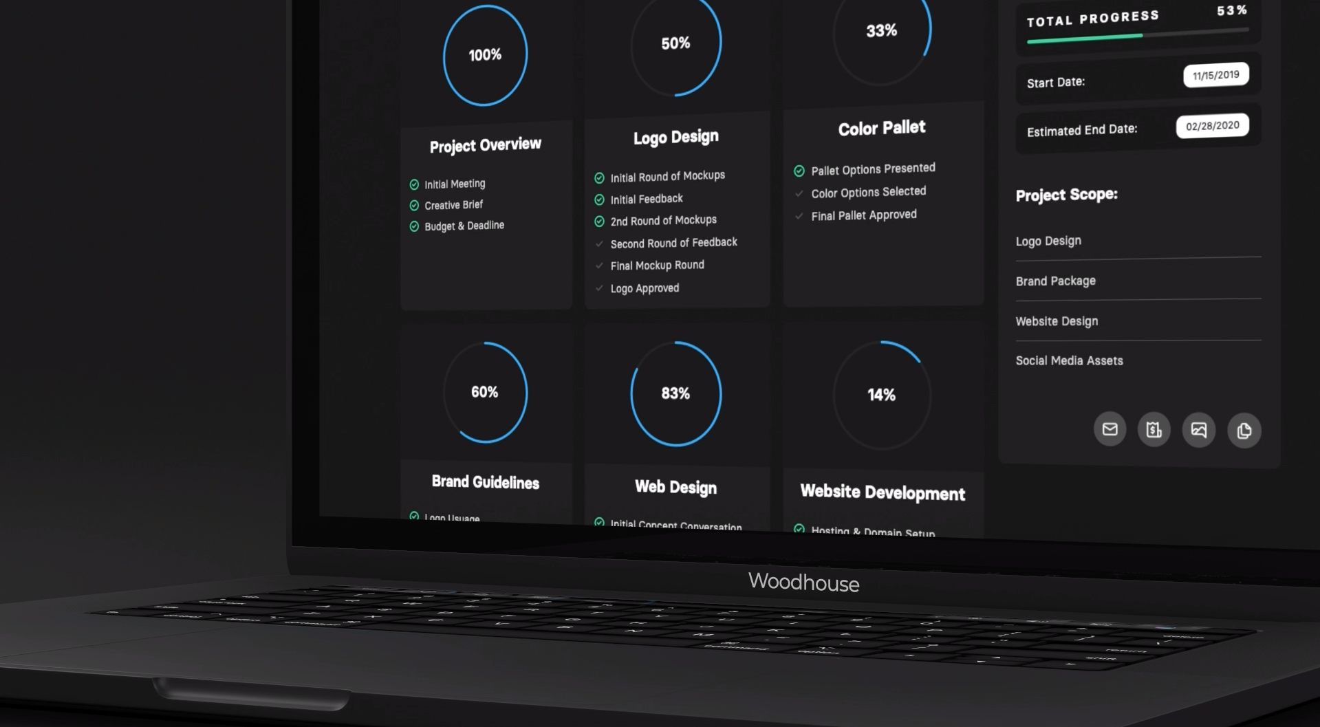 The Woodhouse Project Dashboard is password-protected so details like project budget, competitive analysis, and company goals are protected and viewable to just the client. The dashboard is customizable, dynamic, and most importantly, makes the process easier for the client.
